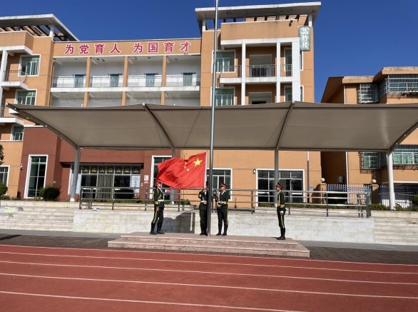 活动在庄严肃穆的升旗仪式中开始。共青团仪仗队护送国旗升起,师生肃立唱国歌。政教处通过广播提醒:“国旗是国家的象征,宪法是国家的根本法,今天的升旗仪式,既是爱国教育,也是宪法学习的开端。” 嘹亮的歌声与庄重的氛围,让低年级学生直观感受家国意义,为后续宪法宣讲筑牢情感基础。