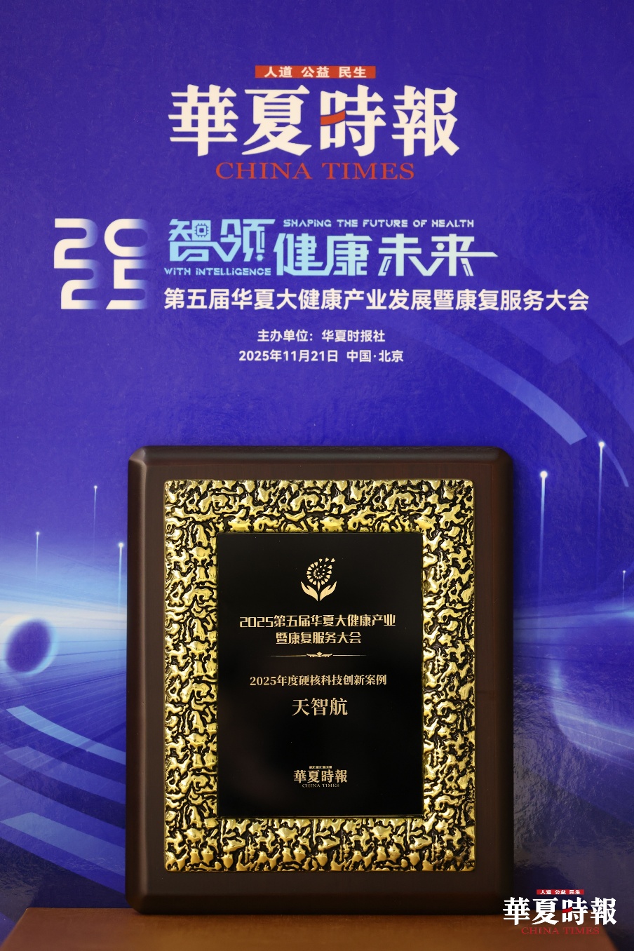 11月21日,由华夏时报社主办的第五届华夏大健康产业发展暨康复服务大会在北京隆重召开。作为大健康领域连续四年引领行业风向的标杆盛会,会议期间揭晓了备受瞩目的“2025年华夏大健康金手杖优秀案例”。天智航凭借在医疗机器人领域的技术突破与临床应用成果,荣获“2025年度硬核科技创新案例”奖。