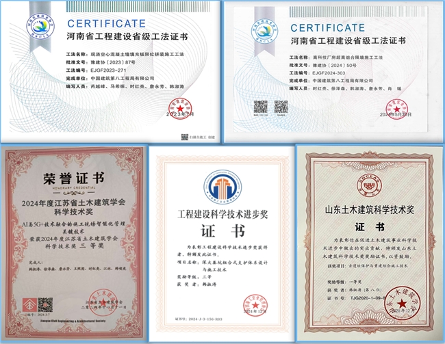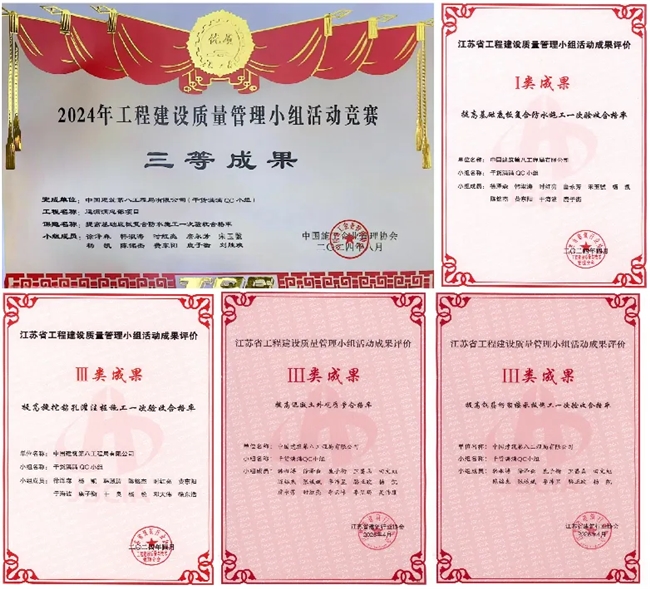 坚持“方案先行、样板引路、过程跟踪、严格验评、一次成优”的管理思路。以标准化管理为手段,坚持“首件制,样板引路”,组织落实质量交底,对关键工序旁站监督;严格源头把关、过程控制,实施精细化管理,做到高标准建设、高质量验收,形成自下而上、一环扣一环的质量控制链;积极开展成果孵化,运用和掌握工程施工的新技术、新工艺、新材料、新设备解决工程施工中的重点、难点,推广应用新技术28项;总结形成工程建设科学技术进步奖1项,江苏省建筑行业协会科学技术成果1项,河南省建设工程施工技术创新成果1项;省级工法1项;专利3项;国家级QC成果1项,省级QC成果4项和发表论文3篇。创新成果总结应用让科技转变为现场生产力,将科技的优势转化为现实的发展优势,不断提高施工效率、提升工程品质、提高工程效益。
