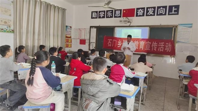 活动中,石门乡卫生院医护人员用PPT展示流感病毒的“威力”和传播场景,直观呈现流感与普通感冒的区别;用通俗易懂的需要讲解流感、传播途径及危害;同时示范口罩的正确佩戴,引导学生多喝水、勤通风、少去人多拥挤的地方、及时接种流感疫苗。