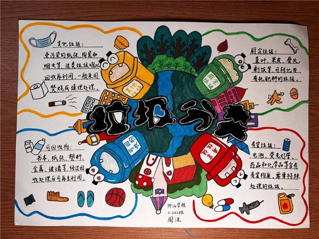 活动伊始,学校面向全体学生发起了“垃圾分类,你我同行”主题手抄报征集。一张张五彩斑斓、图文并茂的手抄报作品纷至沓来。作品既有对四分类(可回收物、有害垃圾、厨余垃圾、其他垃圾)知识的清晰图解,也有对乱丢垃圾危害的深刻警示,更有对未来绿色家园的美好憧憬。这些作品不仅展现了学生们出色的动手能力和审美情趣,更反映了他们对垃圾分类知识的深入理解和独特思考。