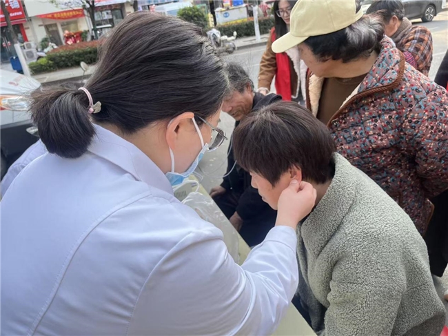 活动现场,二院医护团队针对老年人常见慢性病,免费提供血糖、血压测量服务,并逐一建立健康档案,对指标异常的老人现场给予饮食、用药指导。中医科的特色诊疗服务成为亮点,耳穴贴压放血和电脉冲治疗等中医疗法吸引众多老年人排队体验。医护人员运用专业中医知识,通过细致观察耳部穴位、耐心询问身体状况,精准定位穴位进行耳穴贴压放血治疗,有效缓解失眠、高血压、关节疼痛等常见老年病症。电脉冲治疗区,医护人员为有需求者实施理疗,显著减轻身体不适,赢得现场老人一致赞誉。