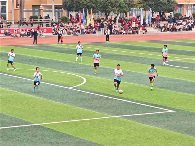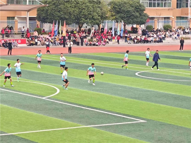 足球表演赛: 学校足球队为师生们带来了一场高水平的足球表演赛。队员们精湛的球技、默契的配合以及顽强拼搏的体育精神,赢得了现场观众的阵阵喝彩,进一步激发了同学们对足球运动的热爱。